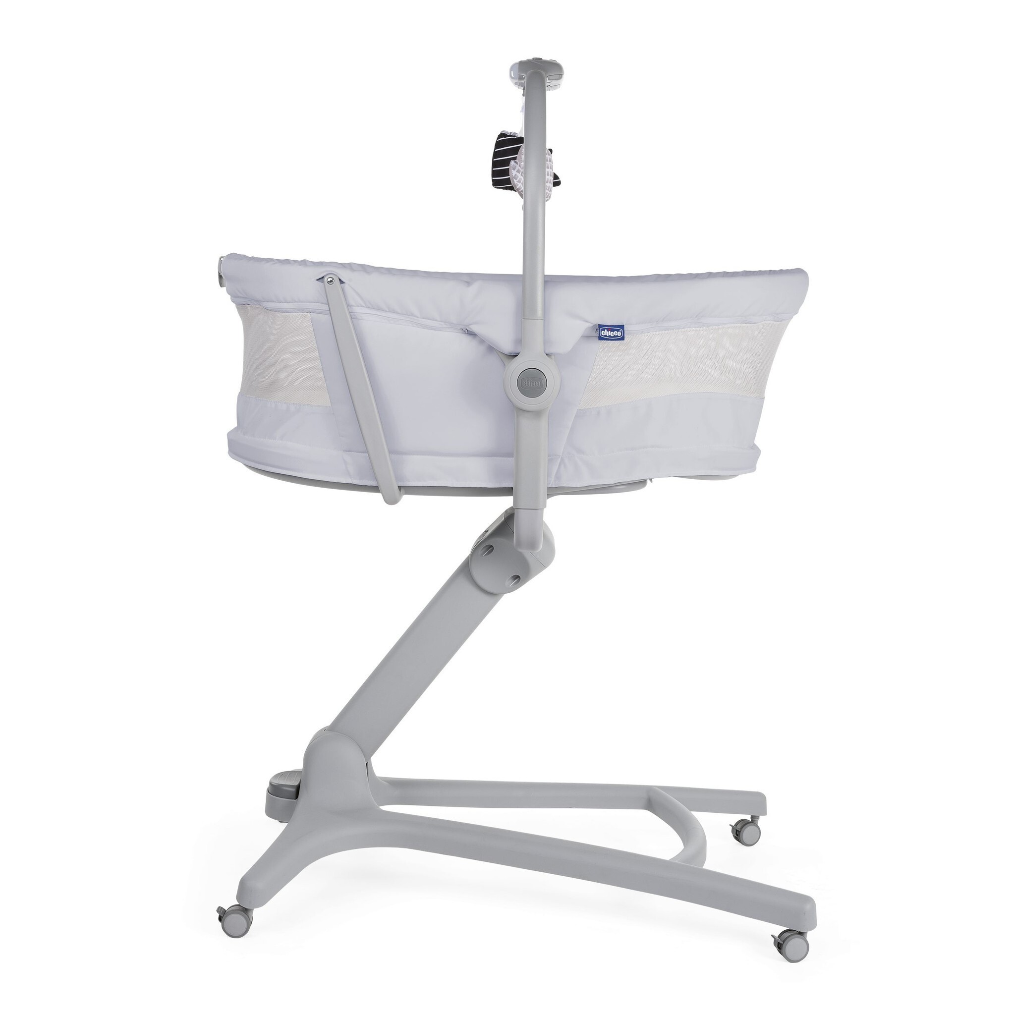 Chicco Baby Hug 4 в 1 Air - новое решение как управляться с рутинными хлопотами о ребенке с рождения до 3-х лет, заняв при этом всего 1 кв. метр домашнего пространства! Кроватка-стульчик может трансформироваться в колыбельку, шезлонг, стульчик для кормления и первый стул для ребенка. В изголовье и ножках кроватки-стульчика находятся широкие вставки из сетчатого материала.