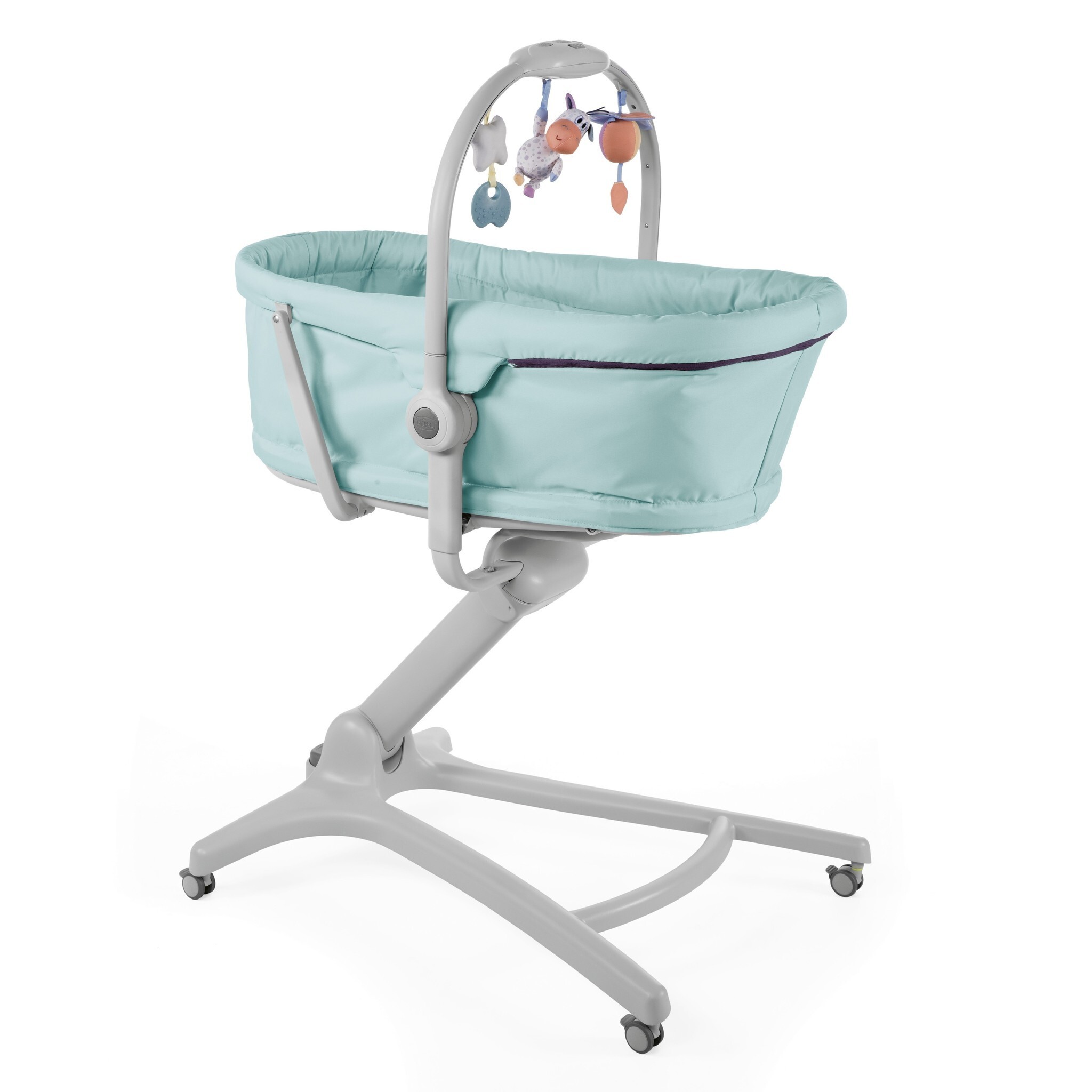 Кроватка-стульчик BABY HUG 4 в 1 от Chicco растет вместе с малышом: может быть использована как комфортная колыбель с рождения, шезлонг, стульчик для кормления и стул для малыша постарше.