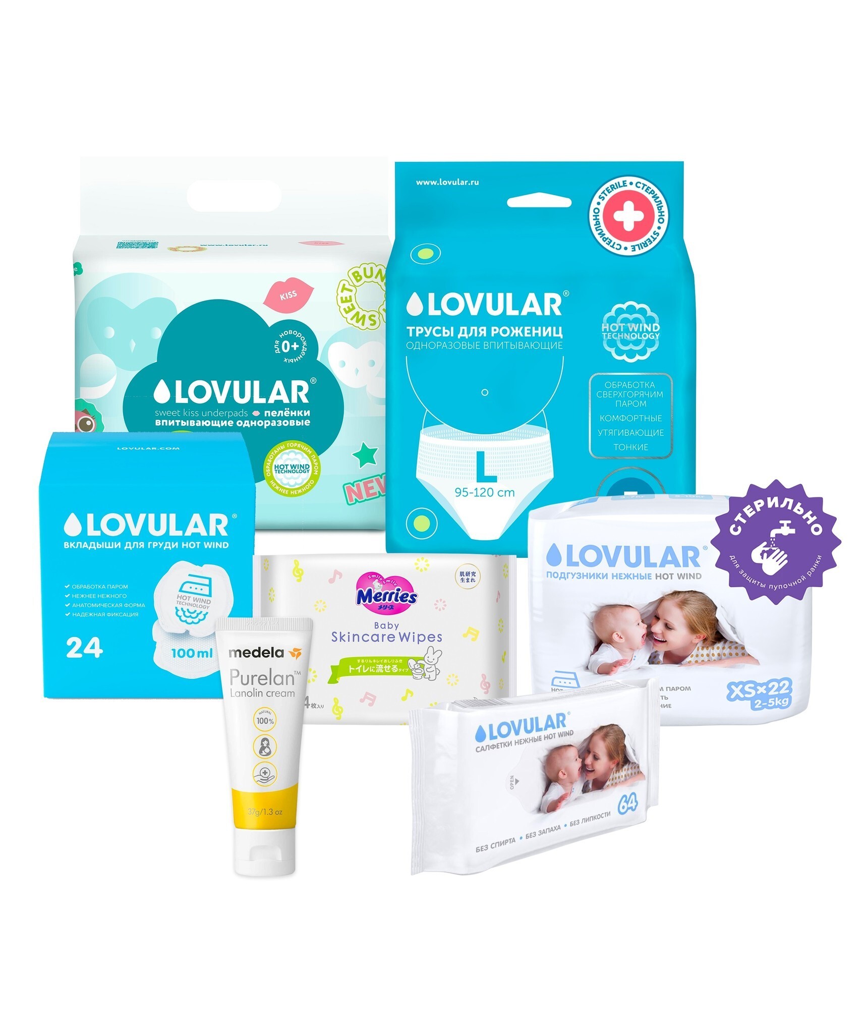 Подгузники стерильные Lovular Hot Wind, размер XS, 2-5 кг, 22 шт: